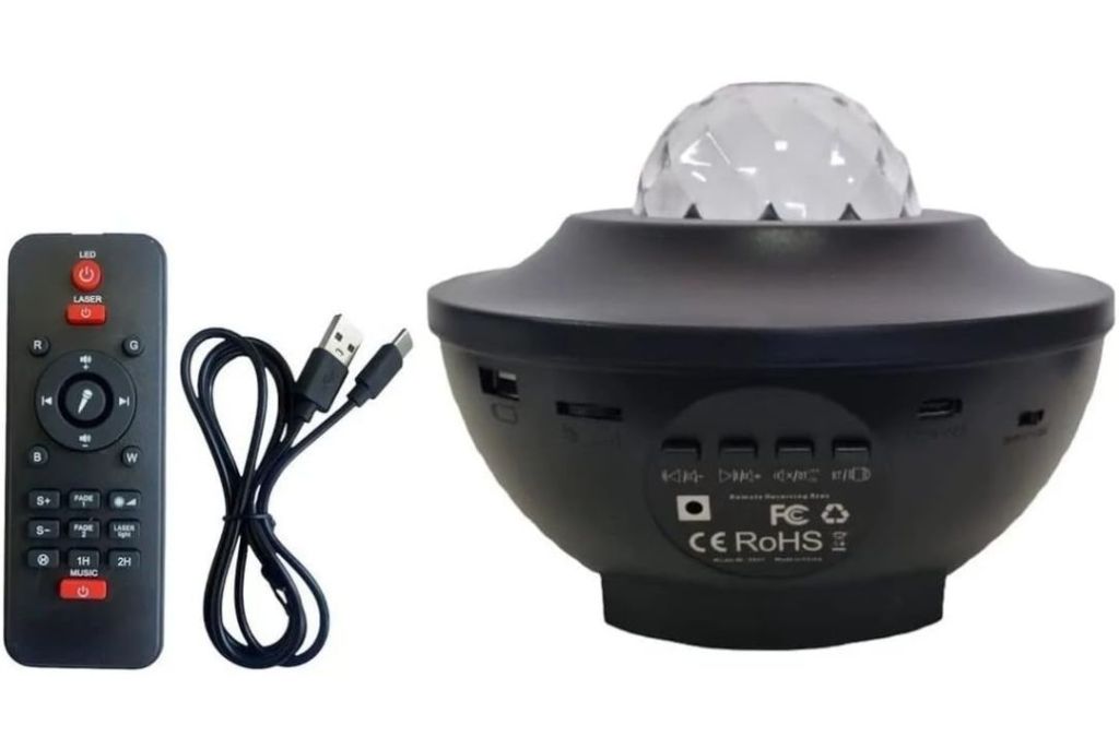 O aparelho projeta uma imagem na parede que lembra água, e tem opções de várias cores, sendo as primárias azul, vermelho, verde e branco (você pode mesclar entre elas também). A movimentação da luz pode ser ajustada em 3 níveis de velocidade, parecendo água em movimento mesmo. Além da luz, é possível acionar um laser que parece estrelas.