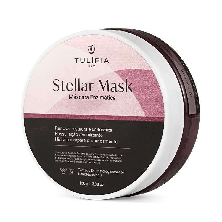 “Uma fusão cósmica de benefícios que transformam a pele. A Máscara Enzimática foi desenvolvida para o uso profissional estético. Com a combinação de ativos naturais, essa máscara proporciona uma esfoliação eficaz, capaz de remover células mortas e preparar a pele para a absorção otimizada de ativos.”