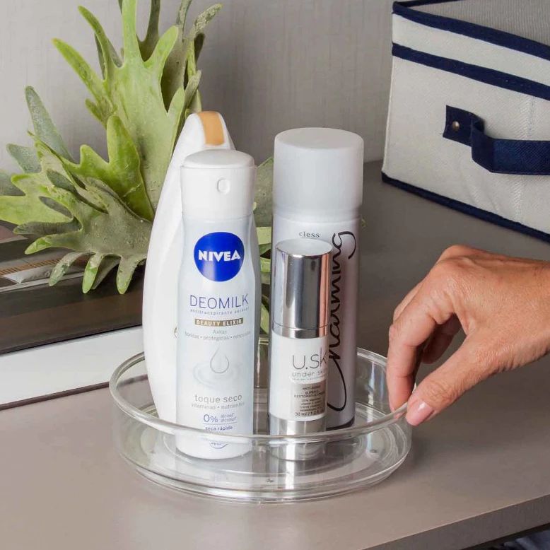 Já o organizador giratório, fica legal sob a bancada, mas também é interessante para otimizar o espaço dentro de armários. Para comprar clique aqui!