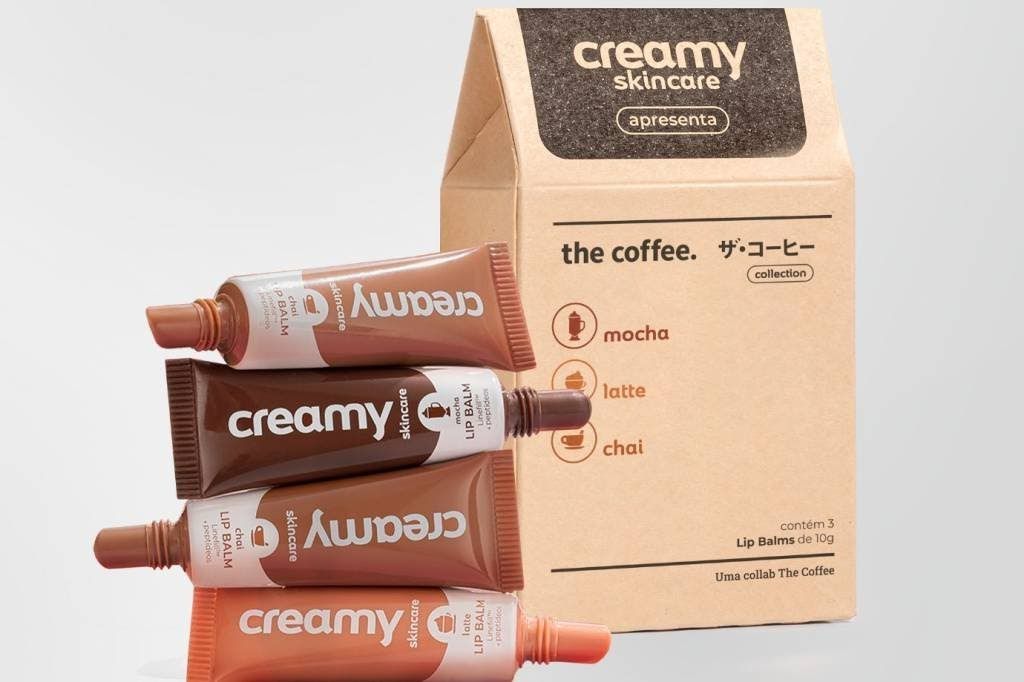 Agora a Creamy fez uma colaboração com a The Coffee, famosa rede de cafeterias; lançando 3 hidratantes labiais inspirados nas bebidas: Mocha, Chai e Latte. Os hidratantes possuem textura cremosa, com efeito gloss, cores nudes e fragrâncias que remetem às bebidas.