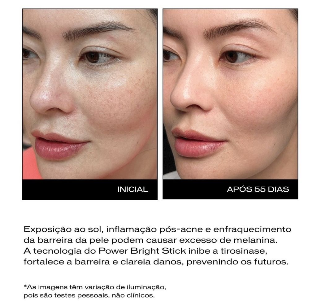 Tecnologia concentrada em bastão para clarear até mesmo hiperpigmentações difíceis, reduzir rugas em áreas como ao redor dos olhos, melhorar a aparência dos poros e a hidratação.